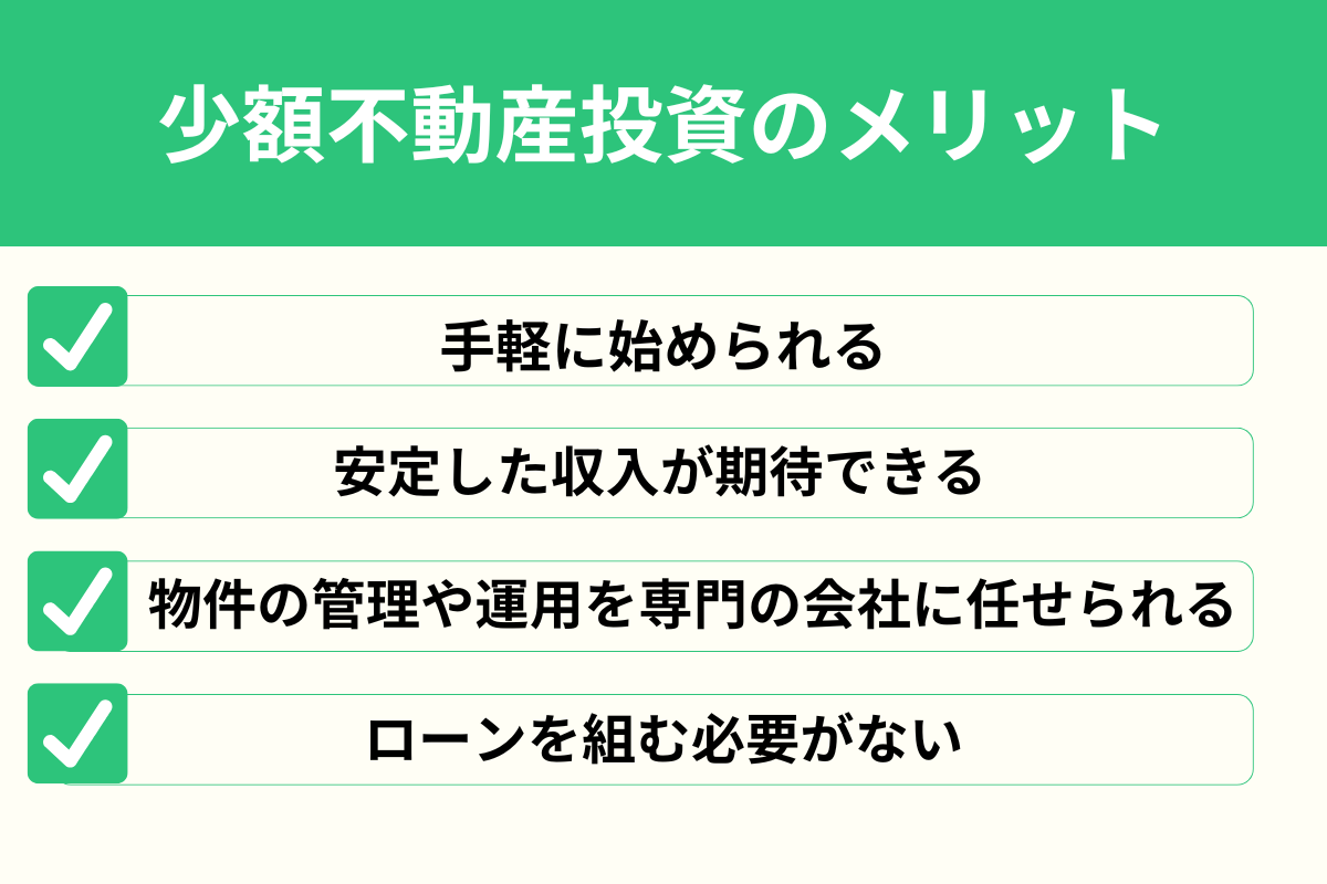 少額不動産投資のメリットとして、手軽に始められることが挙げられます。