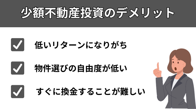少額不動産投資には、以下のようなデメリットがあります。