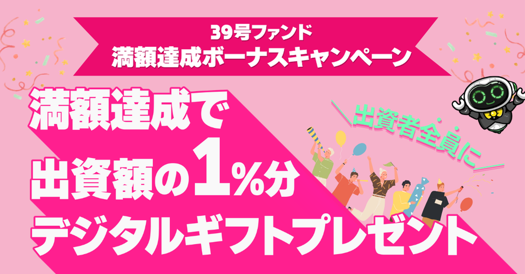 ・本特典は39号ファンドの募集金額が満額達成した場合のみ適用となります。