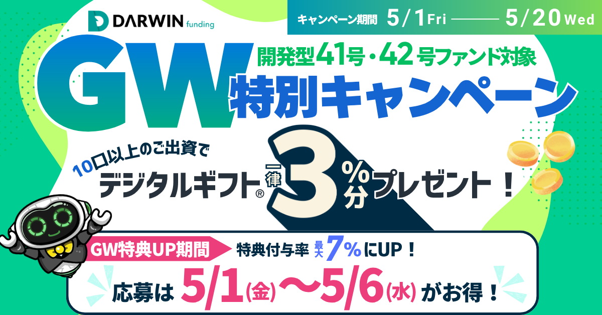 ★2ファンド同時募集!GW特別キャンペーン★DARWIN funding 開発型41号